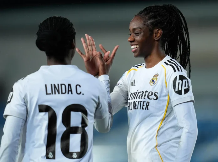 El Real Madrid continúa demostrando su potencial en la Liga de Campeones, al superar al Paris FC por 2-0 en el estadio Alfredo Di Stéfano, en el partido de vuelta de los playoffs. Con esta victoria, el equipo español se clasifica a los cuartos de final, donde se enfrentará al FC Barcelona. Los goles de Naomie Feller y un autogol de N’Dongala sellaron la suerte de una eliminatoria que ya llegaba con ventaja para las blancas, gracias al 2-3 obtenido en el encuentro de ida. Este partido estuvo marcado por la expulsión de la jugadora francesa Théa Greboval en los primeros minutos, lo que influyó considerablemente en el desarrollo del juego.