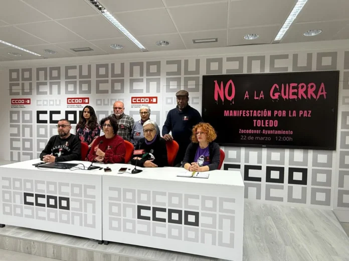 ‘No a la guerra’ reúne a diversas entidades, entre las que se encuentran la Unión Popular de Estudiantes, Mujeres de Negro contra la Guerra, Marcha por Palestina, la Plataforma 8M Toledo, Izquierda Unida, el Partido Socialista, el Movimiento Sumar, Comisiones Obreras, la Asociación Vecinal La Cava, la Asociación Avalto, el Partido Comunista de España, la Asociación Patrice Lumumba, la Asociación de Vecinos Progresistas ‘Amigos del Polígono’ y la Federación de Asociaciones Vecinales, así como la Unión Popular de Inquilinos.