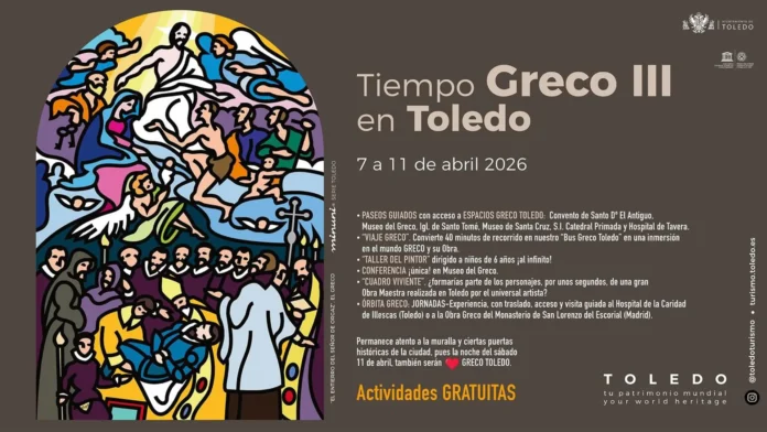 La iniciativa se completa con ‘Órbita Greco’, unas jornadas que ofrecerán visitas guiadas a otros lugares clave relacionados con el artista, como el Monasterio de San Lorenzo de El Escorial y la localidad de Illescas, donde se contextualizará la llegada del pintor a España y su asentamiento en Toledo.
